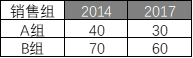 柱形图:可以横向比较A,B组数量关系。但很难看出2014与2017年总数量差异。
