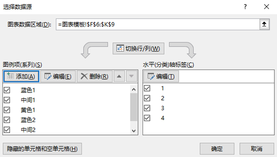2.选中图表-右键-选择数据-依次添加如下数据。
