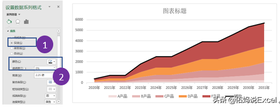 按照同样的办法将其他数据系列的颜色修改,最终面积图效果如下所示。