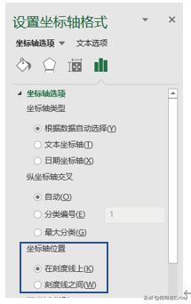 选中面积图横坐标轴并右击,点击【设置坐标轴格式】,在右侧对话框中找到【坐标轴选项】下的【坐标轴位置】,选择【在刻度线上】即可完成设置。