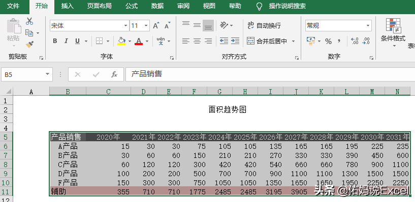 下面通过1个案例介绍面积图的制作步骤及制作过程中的注意事项。