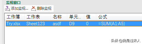 1.工作簿:添加要查看的单元格时,它将捕获工作簿的名称。