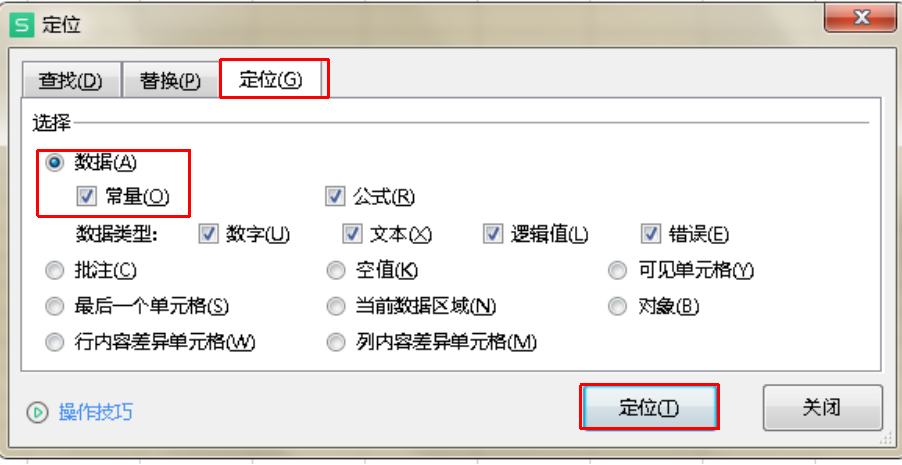 选中填充好的序列,快捷键“Ctrl+G”,打开定位对话框,选择”常量”,定位。