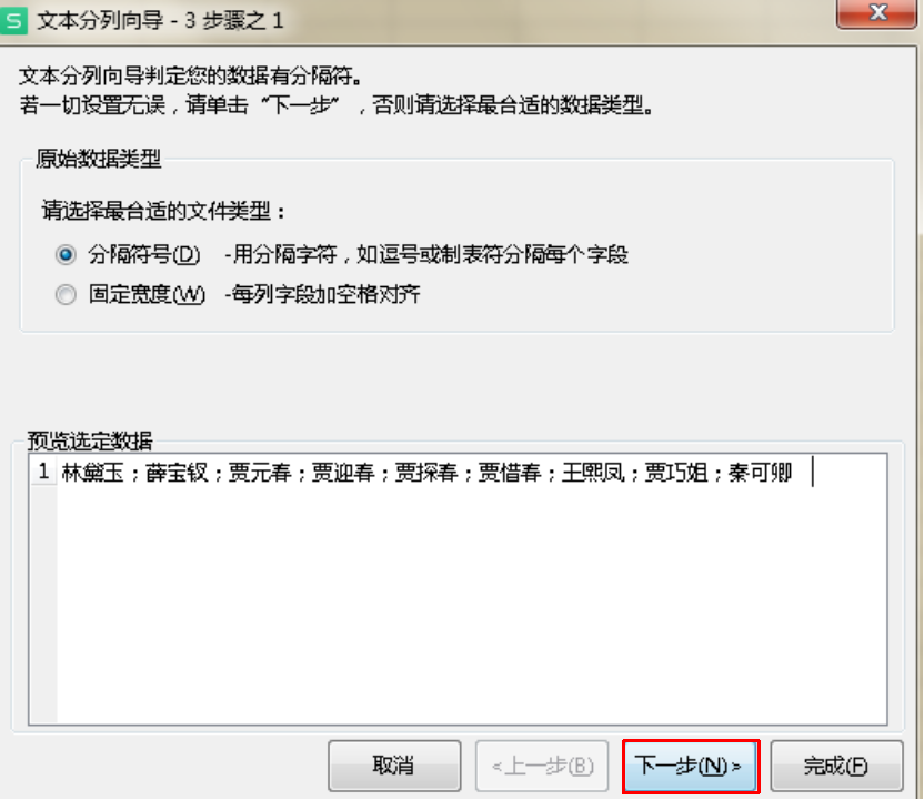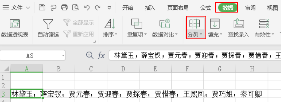 第二种:首先单击数据,选择数据—”分列”,打开分列向导。
