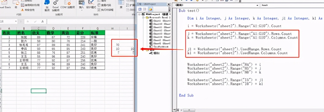 j = Worksheets(“sheet2”).Range(“A1:G10”).Rows.Count
