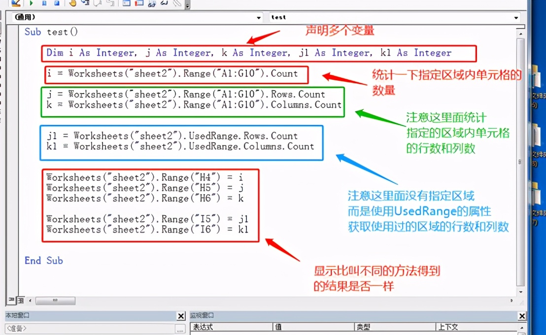 注意:我这里面在复习一下前面分享的UsedRange的作用(表示工作表中已经使用的单元格区域)