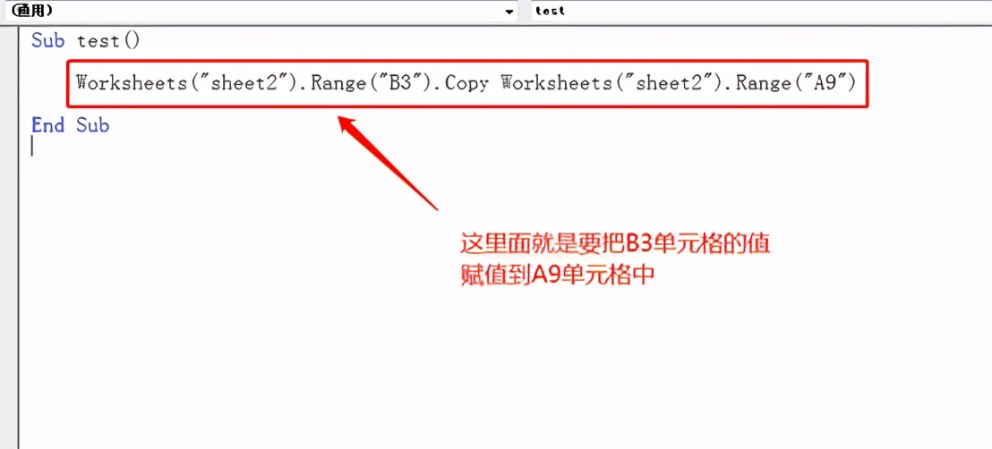 Worksheets(“sheet2”).Range(“B3”).Copy Worksheets(“sheet2”).Range(“A9”)