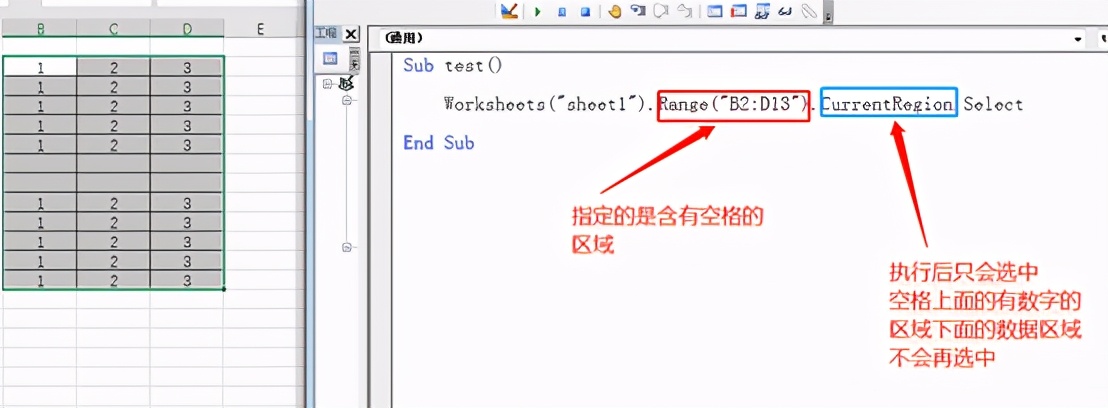 CurretRegion的作用就是返回当前区域是空白行和空白列的任何组合所限定的区域,