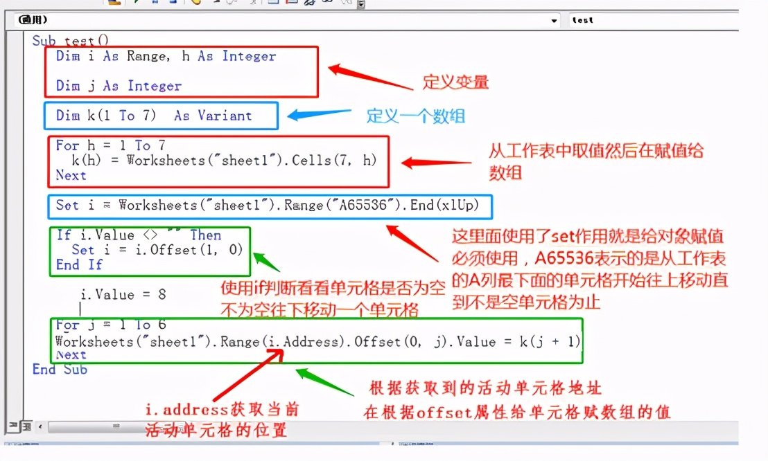 Worksheets(“sheet1”).Range(i.Address).Offset(0, j).Value = k(j + 1)