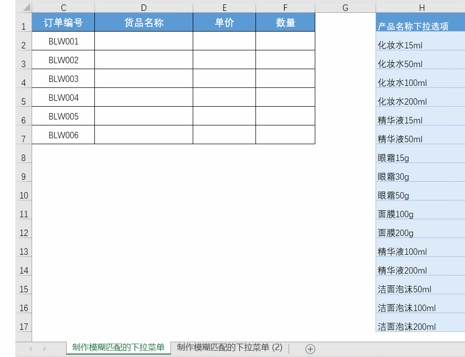 今天就来给大家分享一个模糊匹配的下拉菜单的制作方法,效果如下。