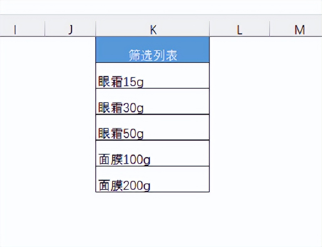 我们的表格中有一个筛选的列表,你可以放在你工作表的任何位置,或者一个单独的工作表里。