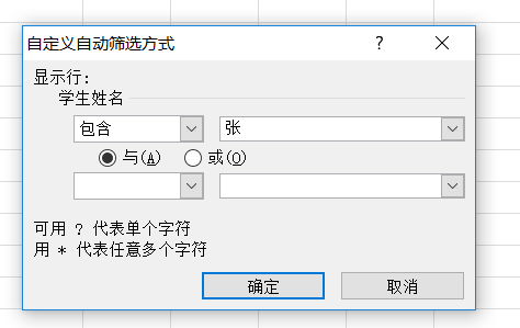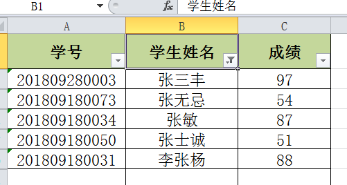 最终效果如下,所有包含“张”的学生信息就被筛选出来了。