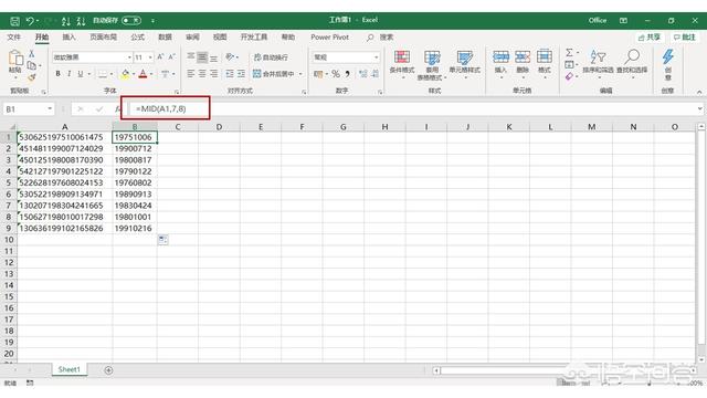 如下所示,从身份证号中,提取出生日期,就是使用公式:=MID(A1,7,8)