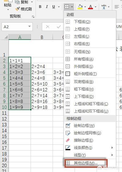 也可以对单元格底色和字体等进行设置,第一列设置好后继续对后面的列进行设置,如果每列效果一样,就可以用格式刷来刷了。当然最后也可以对整个乘法表加一个整体外框。