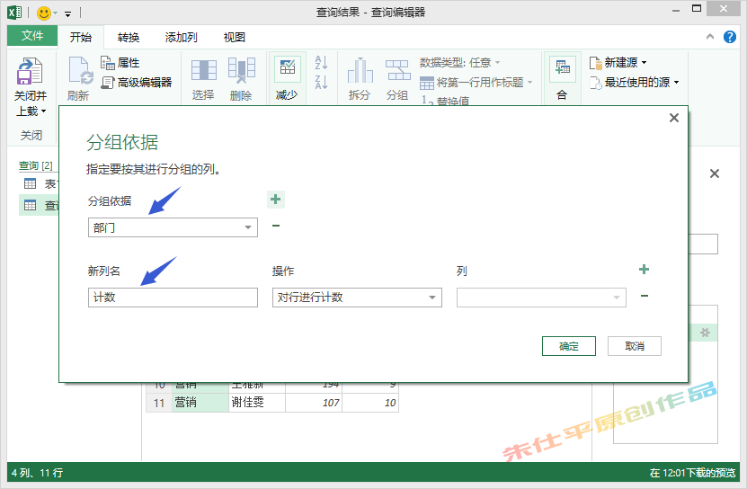 Step 9:选择”索引“字段列,点击[开始]→[分组依据]功能对数据做第二次分组统计。