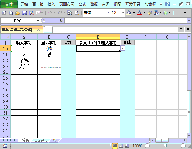 在演示中,我录入【01】直接就显示【①】、录入【020】自动显示成了【⑳】。