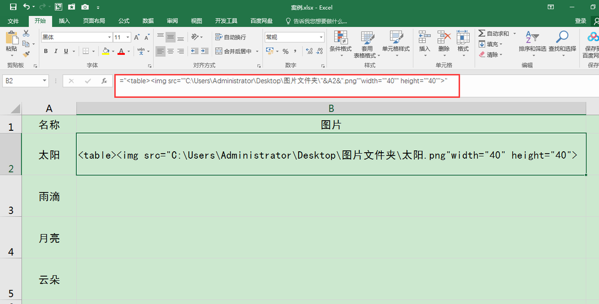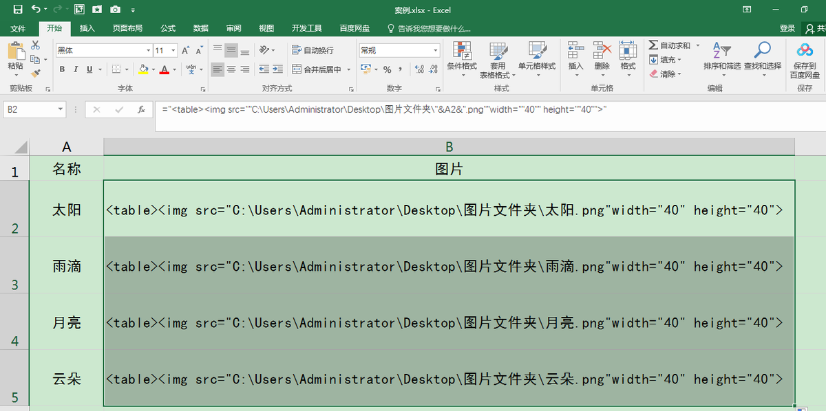 ="<table><img src=""C:\Users\Administrator\Desktop\图片文件夹\"&A2&".png""width=""40""height=""40"">"