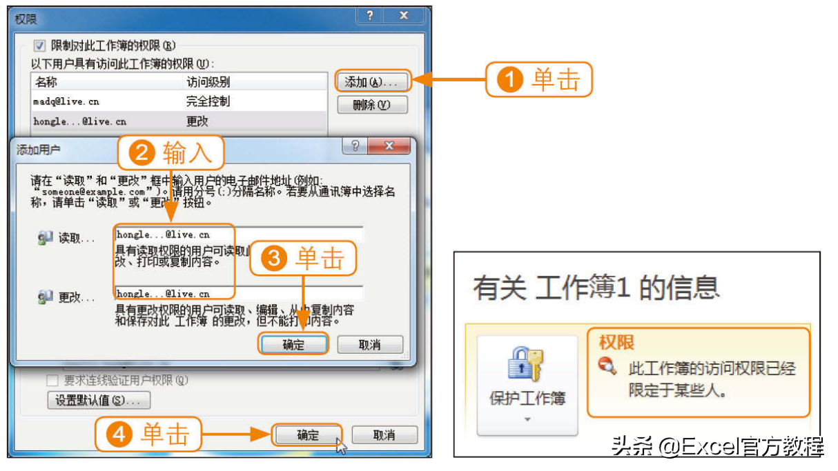 在excel中对工作簿设置保护时,如果设置查看工作簿的指定用户太少时,可以添加管理凭据的用户;如果觉得工作簿中的数据不再重要时,用户也可以去除访问权限。这些都是可以轻松实现的,下面我们分别来讲解下如何添加管理用户和删除访问权限的用户。