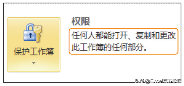 权限显示为“任何人都能打开、复制和更改此工作簿的任何部分”状态,如下图二所示。