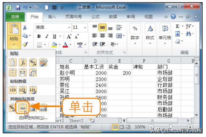 在“粘贴”列表中也可以将数据粘贴为图片格式。