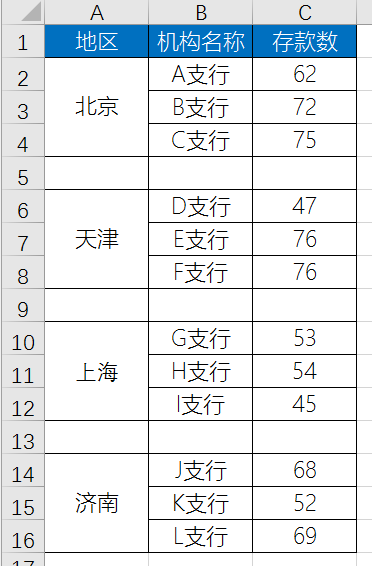 Step1:构造数据。在A:C列构造如下数据,其中C列数据为随机生成结果,公式=RANDBETWEEN(40,80),结果如下图所示。