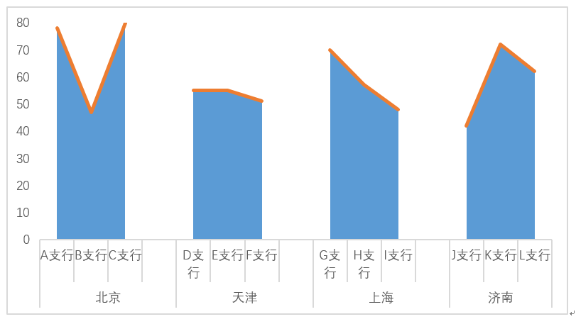 Step4:图表美化。将主次纵坐标最大值均设为80,然后删掉次纵坐标轴,删除网格线,结果如图。