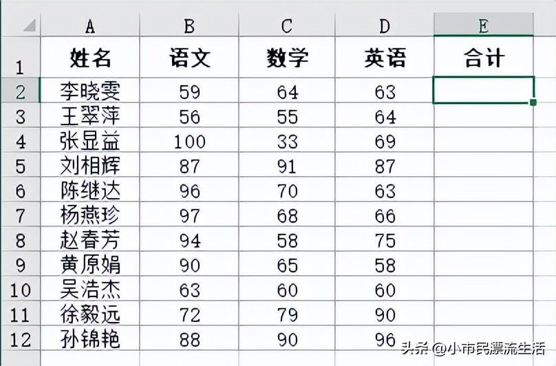 如下案例要求计算出每位同学,语数外3科的总成绩。