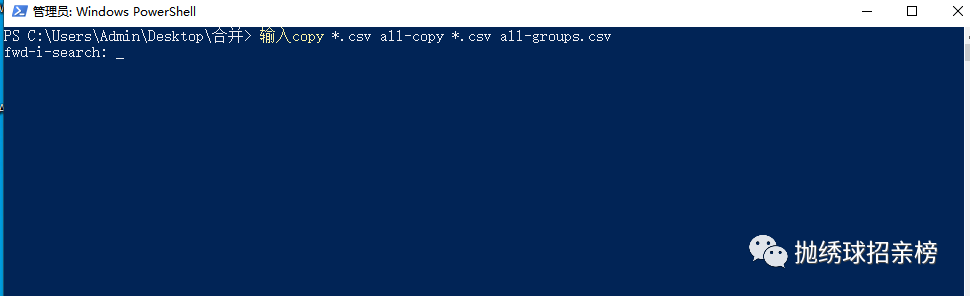 3,输入copy *.csv all-groups.csv,all-group的名字,可以任意。然后按ctrl s,等待完成就可以了。