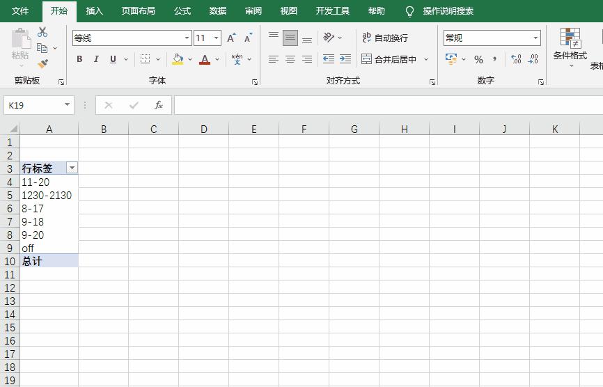 首先我们插入一个数据透视表。点击数据区域中的任意单元格,然后点击插入工具栏下方的“数据透视表”选项,将直接创建一个数据透视表。