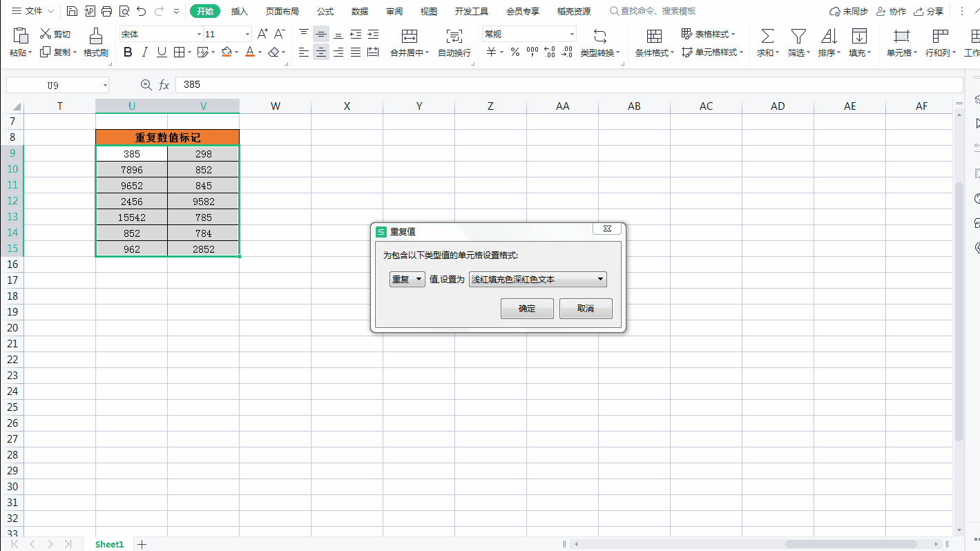 一、通过条件格式,标记重复值,重复值自动填充颜色