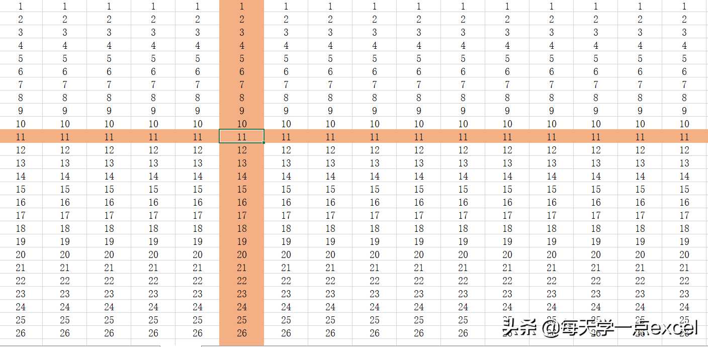 鼠标定位到任意单元格中,它对应的行和列会显示聚光灯的效果。长时间工作的办公人员可以用这种方法缓解眼疲劳,也可以精确找到数据所在的行和列。