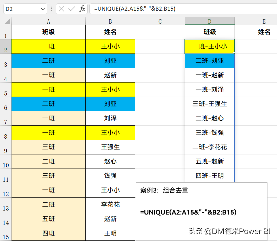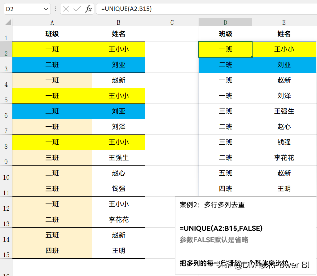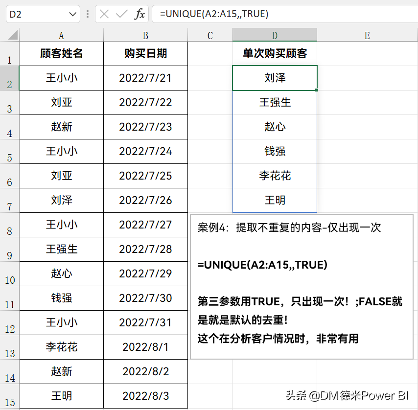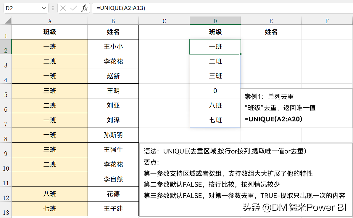 语法:UNIQUE(去重区域,按行or按列,提取唯一值or去重)