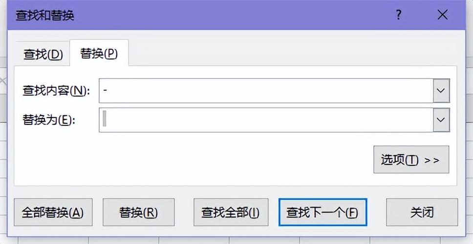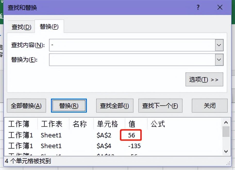 7、使用快捷键Ctrl F打开【查找和替换】窗口,切换到【替换】,输入查找内容为【-】(负数符号),替换内容输入一个空格,点击【查找全部】;