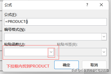 (2)在下方“粘贴函数”处选择乘法公式“PRODUCT”
