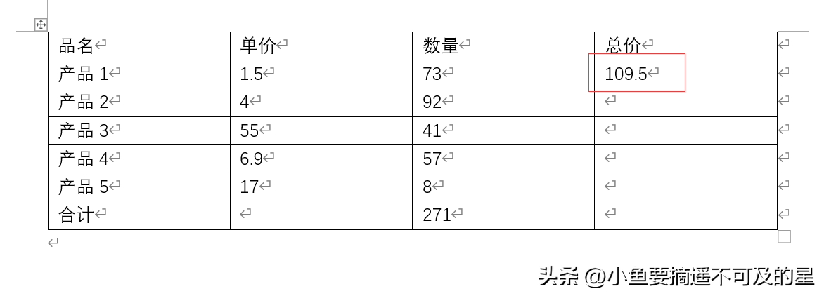 选中第二行的109.5的文字(是文字,不是单元格),右键单击后单击“更新域”,则数值修改成为正确的