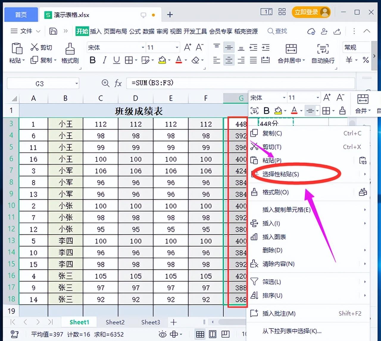 (4)如果要覆盖原来数列内容,可先选择新内容复制,然后再选择原内容进行“选择性粘贴”。
