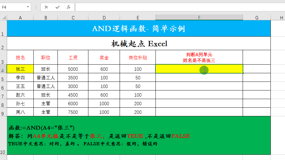 解答:问A4单元格是不是等于张三,是返回TEUE ,不是返回FALSE