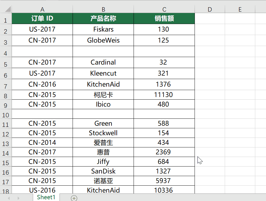 针对空白行,除了删除之外,我们也可以进行保留处理。