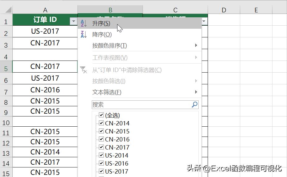 有数据的内容的行将会排序到一起,形成一个整体,便于后期的数据分析处理。