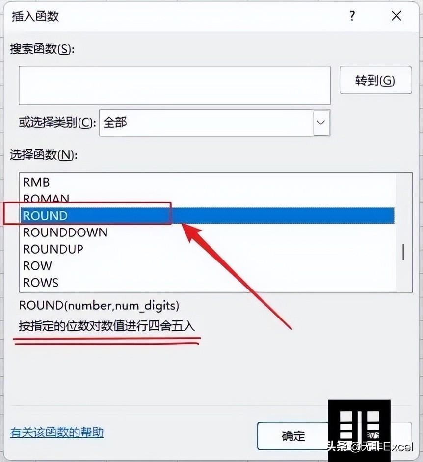 如下图所示:基本格式为:ROUND(Number,Num_digits)。
