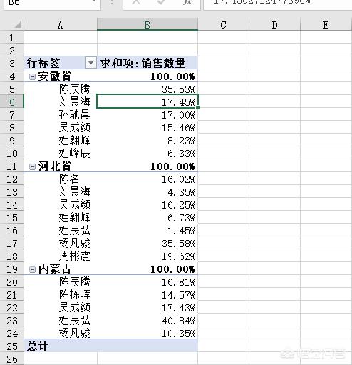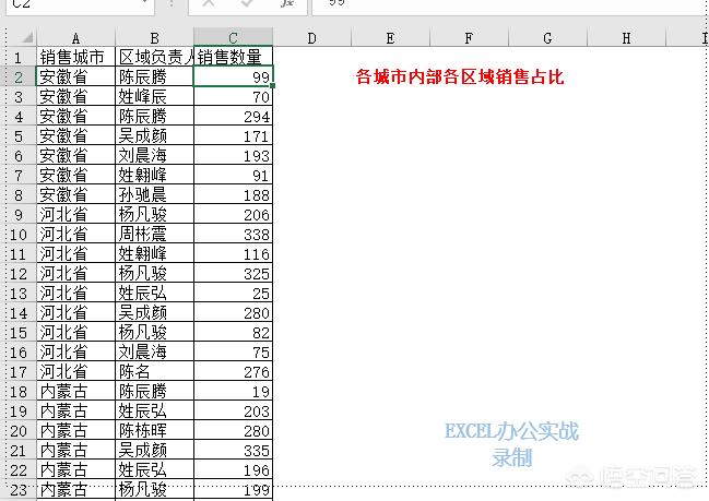 按照各省份 内部区域 负责人的销量占本城市的比重