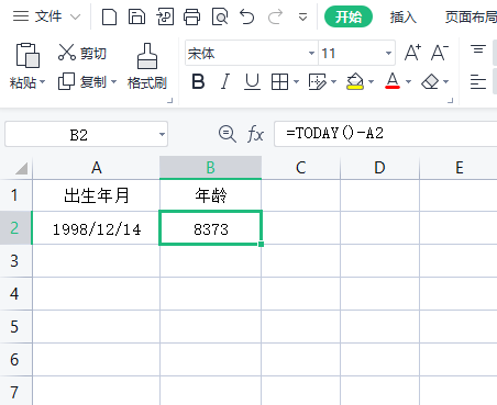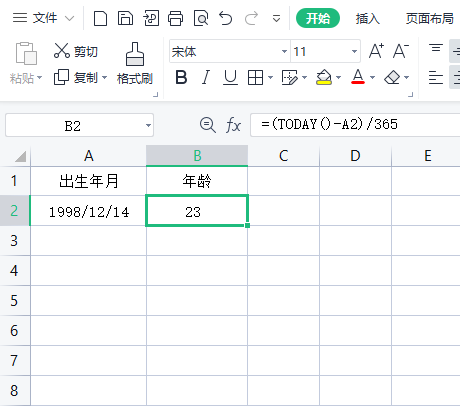 如果出生年月放在A2单元格,要在B2计算年龄,输入以下公式:
