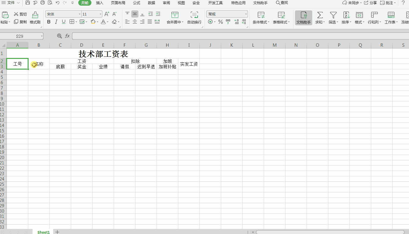 今天教大家制作的表格是就是如下图,一个技术部的工资表,看着是不是很简单,今天这个教程是针对初入职场的小白,如果你是大神请绕过。