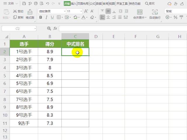 中式排名公式:=SUMPRODUCT(($B$2:$B$11>=B2)*(MATCH($B$2:$B$11,$B$2:$B$11,0)=ROW($1:$10)))