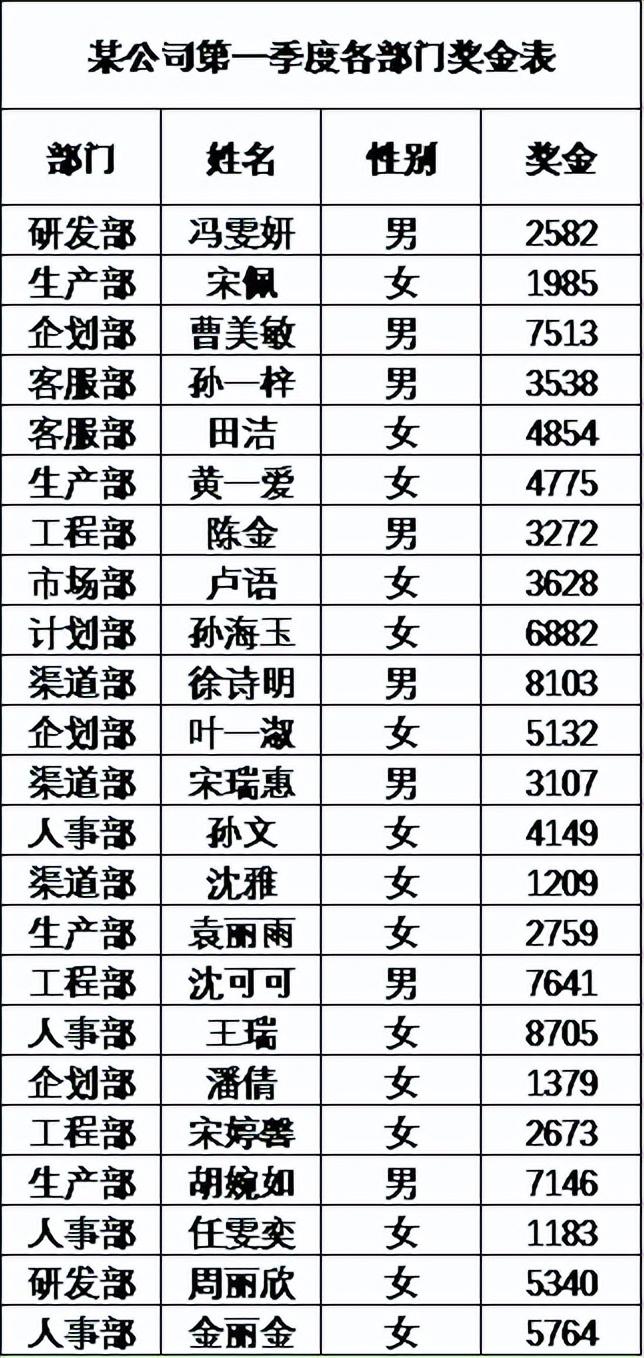 - 如下图所示,是某公司2022年第一季度各部门的奖金金额Excel总表,现在需要将这份总表按部门拆分成各个部门的奖金金额表后下发给各个部门,现在如何快速拆分?