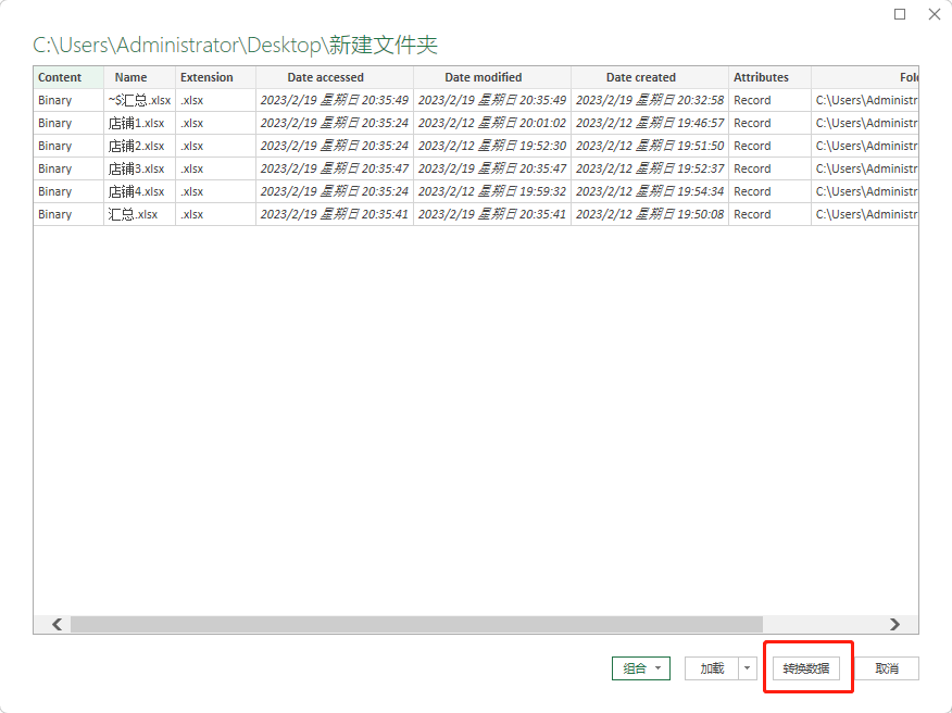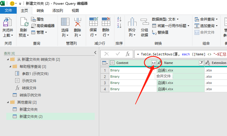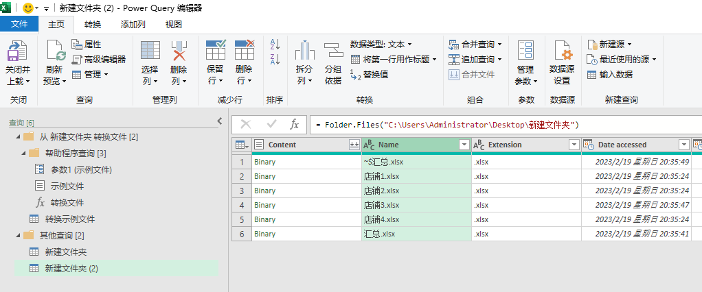 这个时候,会弹出一个PowerQuery编辑器,里面显示了所有的文件