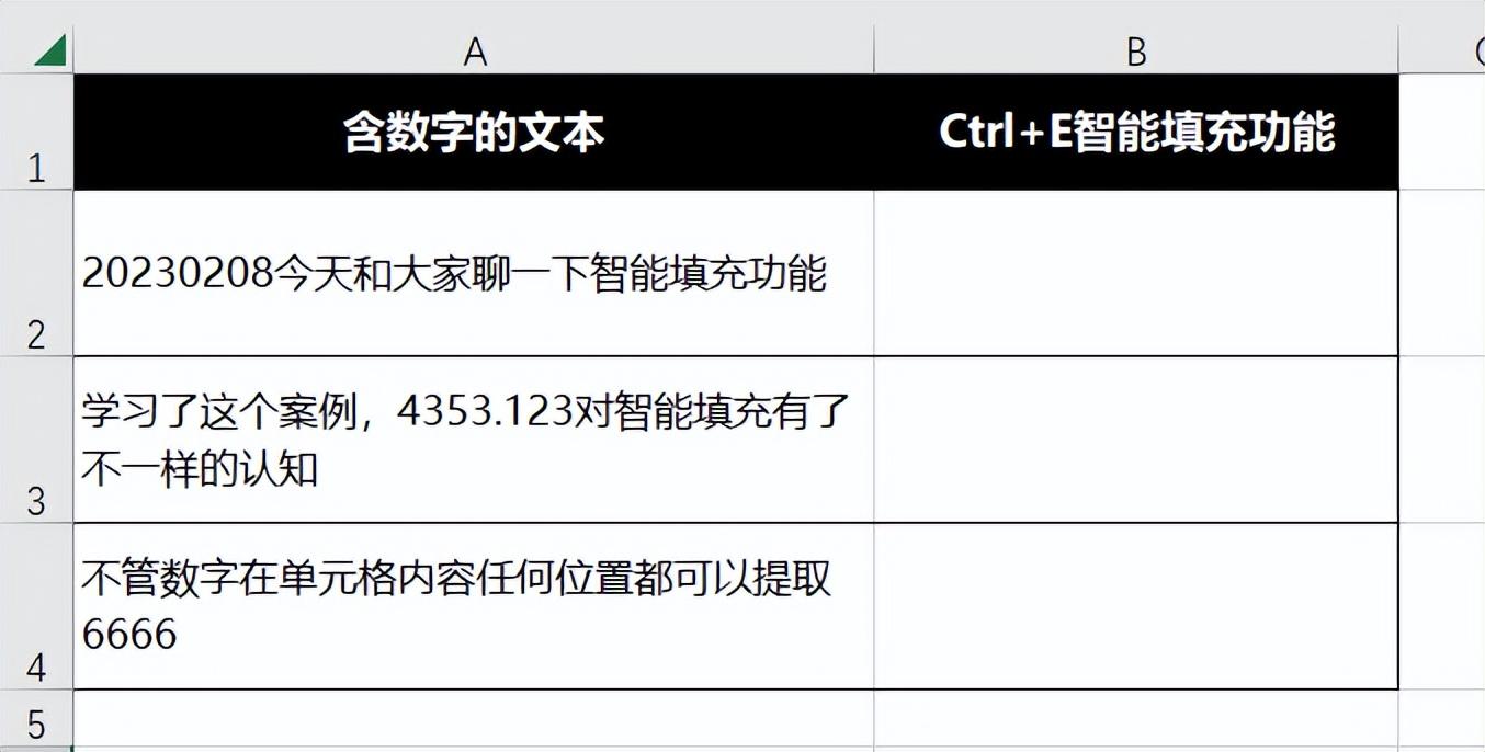 案例数据如下:A列数含数字的文本,B列是希望将数字提取的存放位置。
