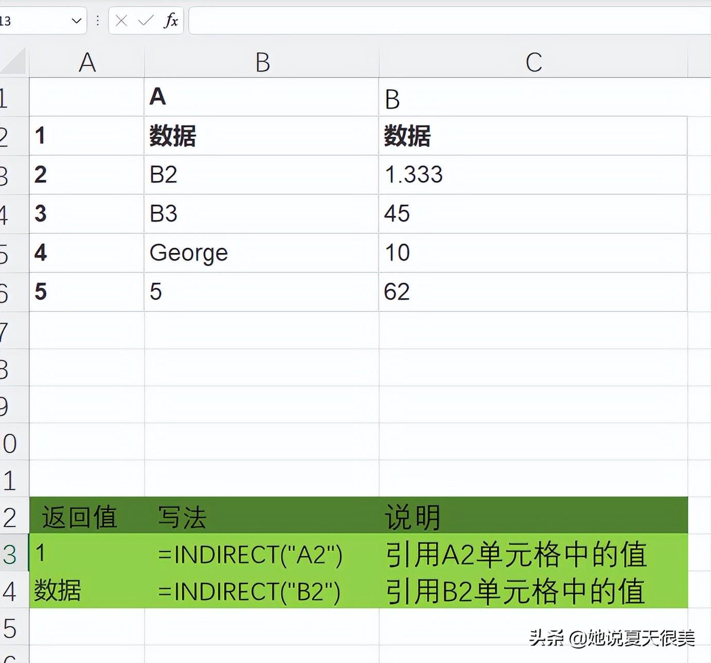 INDIRECT函数:返回由文本字符串构成的数据引用区域,它是一个间接引用函数,而不是直接引用的函数。