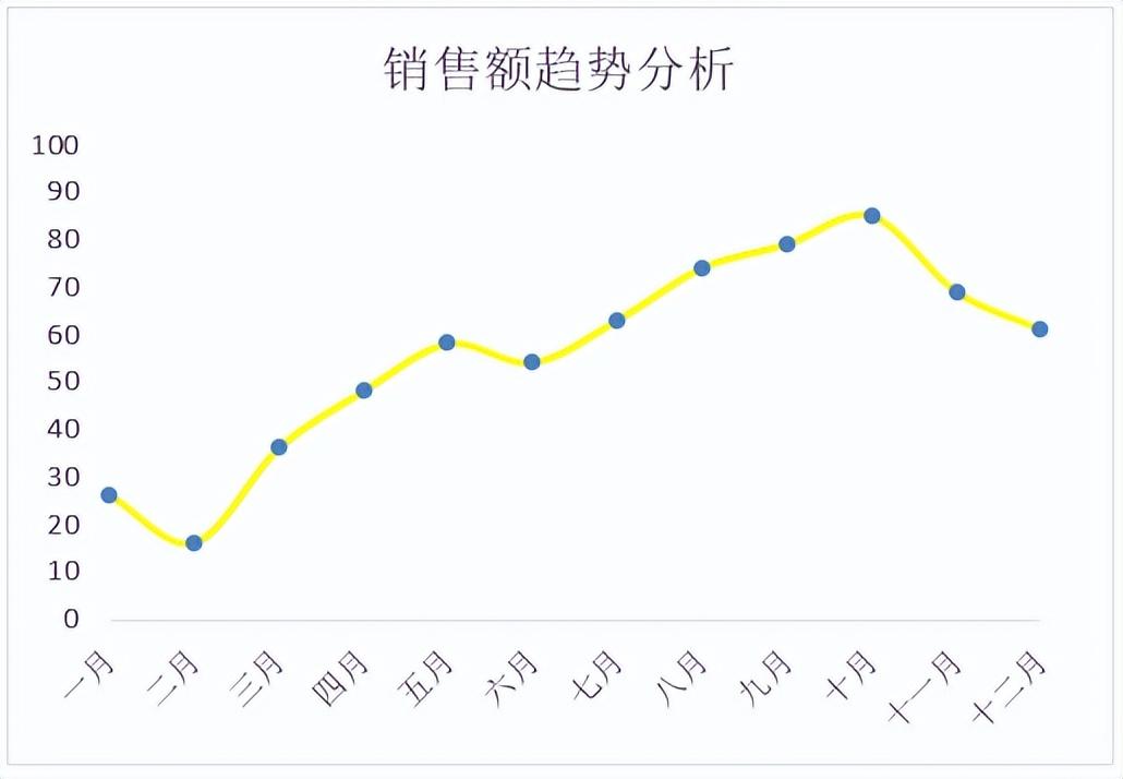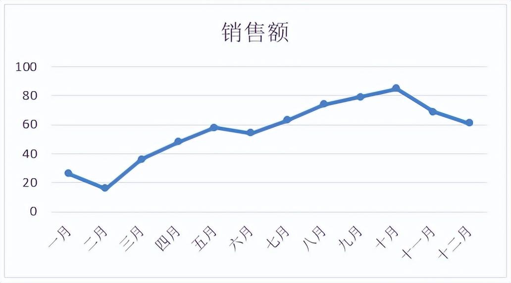 鼠标点击选中并删除水平网格线,修改图表标题为:销售额趋势分析,效果如下: