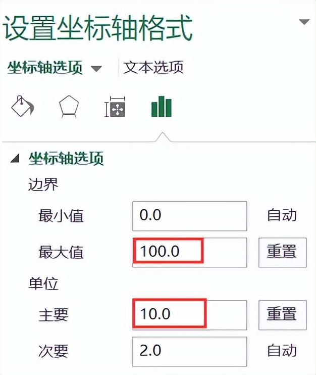 在纵坐标区点击鼠标右键菜单“设置坐标轴格式(F)…”,设置如下: